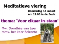 Meditatieve viering in de Beuk.wordt geleid door Dorothée van Leer, samen met Belcanto.De collecte aan het eind van viering is bestemd voor inloophuis De Kans in ons eigen dorp.